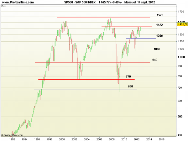 Nous sommes à un tournant graphique éventuel intéressant, aussi nous ajoutons des graphiques relatifs au S&P500 et à l’eurodollar. N’hésitez pas à faire connaître cette analyse à votre entourage. D’avance Merci !