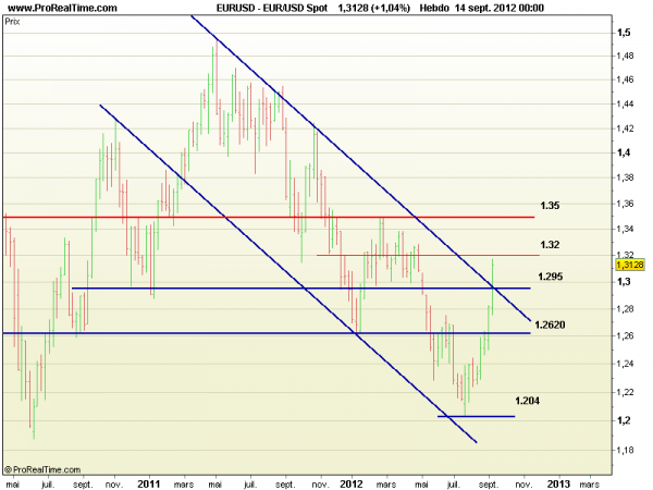 Sur un plan graphique, de nouveaux signaux encourageants ont été émis, et notamment avec l’affaiblissement du dollar lié aux mesures de monétisation américaine. Si l’euro se maintient au-dessus de 1,2950 USD, sa tendance baissière serait enrayée, avec des conséquences négatives pour la compétitivité européenne, mais un moteur positif pour le marché et une meilleure capacité à absorber l’inflation des matières premières et de l’énergie. Au-delà d’un résistance clé à 1,32 dollar, la récupération de l’euro devrait se poursuivre vers 1,35, traduisant le regain de confiance dans l’intégrité de la monnaie européenne, et dans la capacité de la zone à s’extraire du cercle vicieux de la récession…