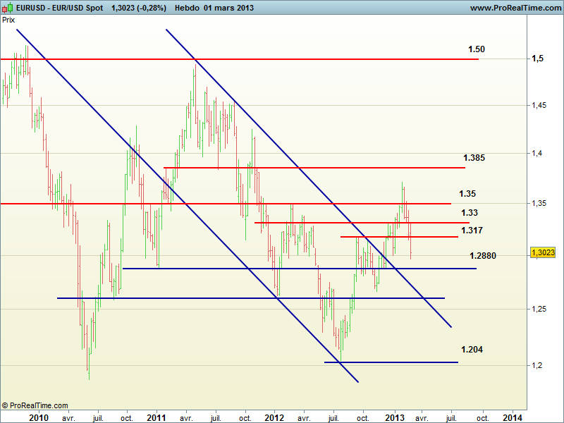 L’événement le plus marquant, et sans doute le plus logique de la semaine, est l’affaiblissement marqué de l’euro, qui reflue rapidement de 1,33 vers 1,30 dollars, témoignant de la différence de dynamisme économique entre les Etats-Unis et l’Europe.