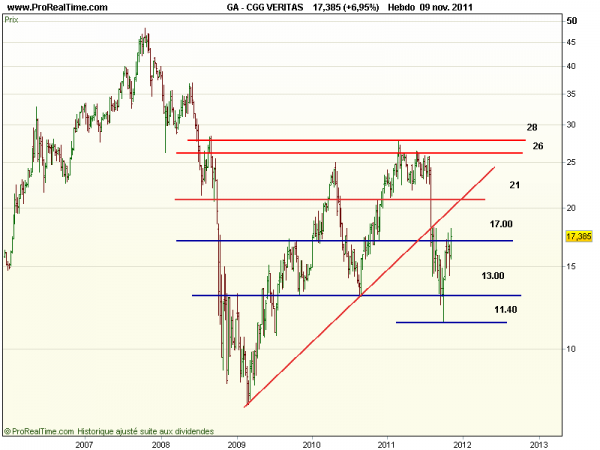 Dans un marché en forte baisseun titre qui monte avec volume est un signe positif. C’est le cas de CGG Veritas, dont les résultats meilleurs qu’attendus et positifs au troisième trimestre confortent les objectifs attendus pour 2011.